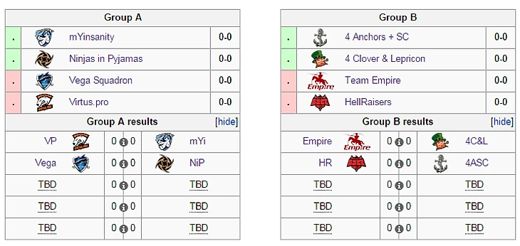 Две лучшие команды из каждой группы попадут в плей-офф, который пройдет по системе double elimination.