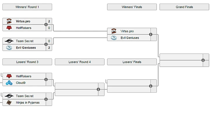 Стоит напомнить, что Evil Geniuses уже встречались с Virtus.pro неделю назад на ESL One, где добились победы в серии со счетом 2:0. Команда-победитель гарантирует себе 57,000$.