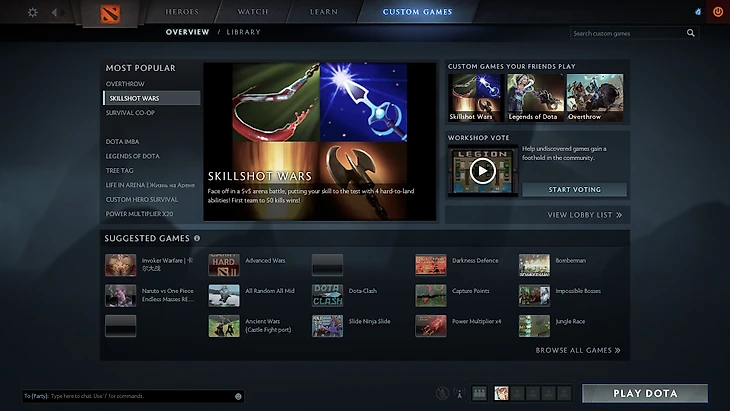 Инвентарь также притерпел серьезные изменения. В общем, касательно интерфейса изменилось практически всё. В хорошую сторону или плохую – решать уже вам. Но мне роднее классическая, старая дотка, в которую я играю уже много лет. По сути, с самого начала открытого бета-теста. Ух, сколько времени с тех пор уже прошло! Как повзрослела игра и вылилось в стиль жизни многих тинейджеров. Но сейчас не об этом... Reborn 0 – симпатичная «вкусняшка», которая должна привлечь новых игроков и чем-то удивить старых. Но один повод крикнуть «УРА!» есть у каждого дотера. Это добавление пользовательских карт. Да! Это свершилось! Уже сейчас их добавлено более 5 тысяч! Здесь и «Битва на Пуджах 5х5», и совместые выживания, и «Diretide» по которому все так скучают. В общем, главное собрать команду. Ведь все игры пользовательских режимов проходят в лобби и ливнуть там можно абсолютно без каких-то штрафов. А это не очень весело.