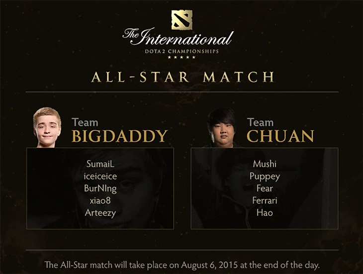 Line-ups for the TI5 All-star match are out, BigDaddy and Chuan the captains
