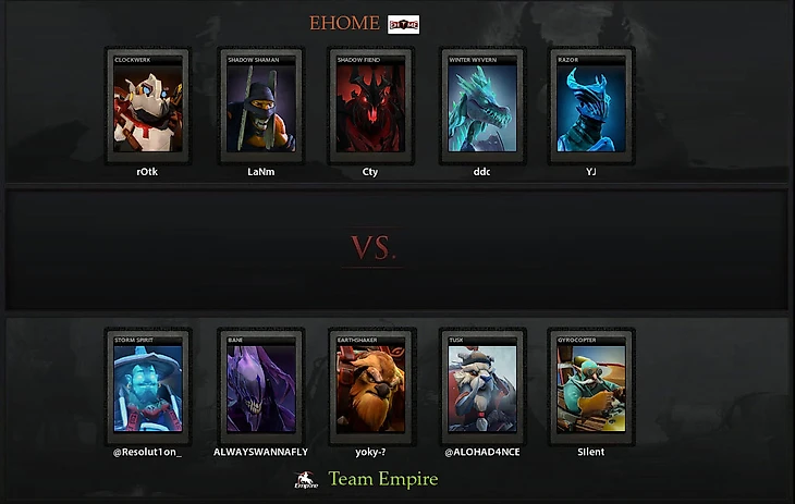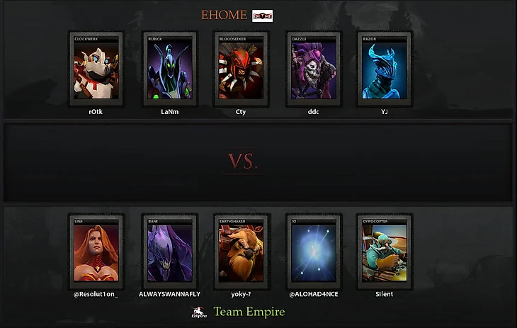 Кстати, об Empire. Из наших команд их почти не удалось застать – когда я просыпался, Yoky как раз делал очередной мегакилл на игроках Ehome и появились заветные буквы «gg» (good game – традиционная форма признания поражения). Они начали очень поздно, первая игра против Vici Gaming началась почти в четыре утра, «благодаря» стараниям Mushi из Fnatik, и их часовой игре с IG. Их разбор будет не очень большим, увы, сужу исключительно по пикам, хайлайтам и беглому взгляду на реплей.