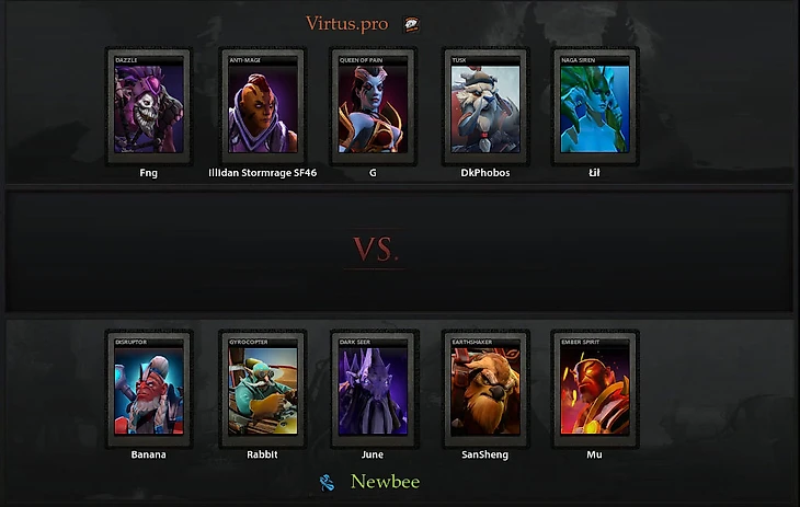 А потом VP расслабились. Иначе объяснить что произошло на второй карте невозможно. После пиков была надежда, что VP смогут затянуть игру в позднюю стадию, где Naga Siren будет представлять угрозу, даже будучи саппортом (героем поддержки, у которых не очень много денег обычно), а Antimag сможет убивать всех за пару ударов. Но мощь Гирокоптера (он вам еще не надоел?), Ember Spirit, Earthshaker не позволила затянуть игру, а помощь Dark Seer (смешной лесовичок с весьма необычными способностями, которые сложно описать), и особенно Disruptor не позволяли VP даже убегать из драк. Возвращали или догоняли и добивали. Увы, 1-1. Newbee относится к тем командам, которые можно обыгрывать, и жаль, что это не получилось.