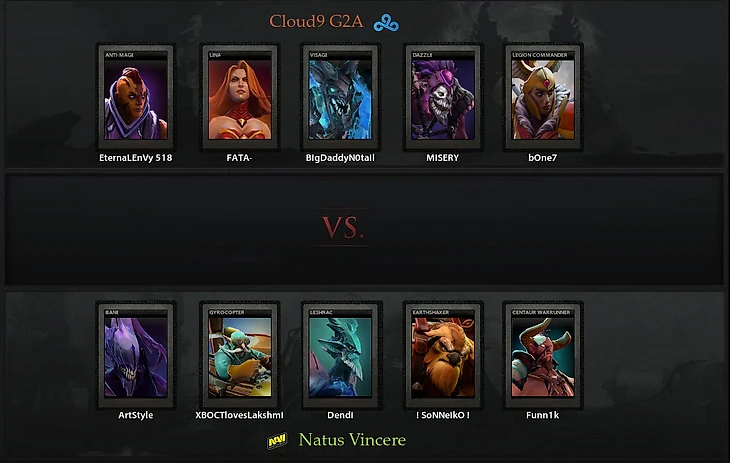 Как бы то ни было, Natus Vincere свой путь по Интернейшнлу начали с игр против Cloud9. Клауда – это особая команда, с совершенно особенным «керри» (керри – это чувак, который будет всех убивать). EternalEnvy, или просто Энви – уже мемемичная личность на просцене доты. Не смотря на очень высокий скилл, он обладает весьма альтернативными взглядами на те вещи, которые покупает на своих героях, и так же часто как вытаскивает игры для своей команды – их и проигрывает.