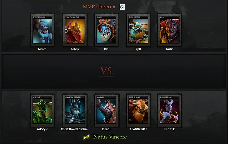 Можно было бы подумать, что первая карта – лишь стартовое волнение, и настоящая сила Навей была показана во второй игре, но второй матч с MVP.Phoenix (одной из слабейших команд на турнире, которая к тому же первую свою игру проиграла 0-2 также несильным compLexity) показал что проблемы с психологией у NaVi остались прежними. Первая карта проходила с преимуществом MVP, но у NaVi было несколько моментов когда они перехватывали инициативу или были очень близки к тому чтобы сломить сопротивление соперника, и каждый раз какая-то мелочь (бешеная корова Spirit Braker, например) их подводила.