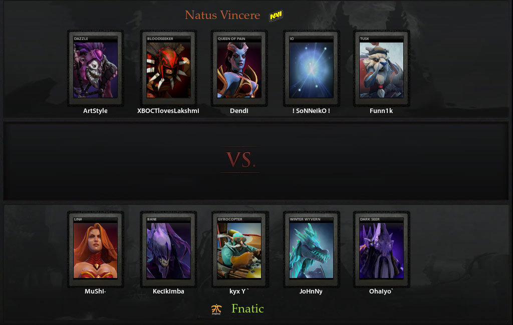 Два ужасно проведенных дня поставили Natus Vincere в положении, когда "рожденные побеждать" стали "обязанными побеждать" - только так оставались хоть какие-то призрачные шансы на то, чтобы попасть в сетку виннеров. Первым соперником украинской команды стали Fnatiki - пожалуй самая нестабильная команда этого интернейшнла. Разнести Team Secret в пух и прах, бодаться с IG полтора часа, но при этом проигрывать MVP.Phoenix за 20 минут.