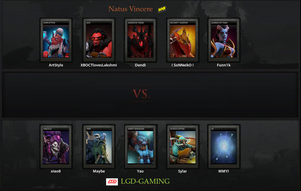 В играх с LGD было отчётливо видно, что концентрации на этот матч у них уже не хватило. Тут и дабл-варды в одной точке от Sonneiko, и семиминутный вард в центре позиции Нави и множество микромоментов, в которых концентриованный Денди или Фанник играли бы гораздо эффективнее. Чувствовалось и отсутствие каких-либо внятных идей. В частности выданный Хвосту Акс оставил ну очень много вопросов. Как керри Акс изжил себя уже очень давно, а против вертолёта он и вовсе пушечное мясо. Тем не менее, ранние этапы игры оставались за нашей командой, и это не были поражения "в салат" - как и ни одно из поражений Нави на этом турнире.