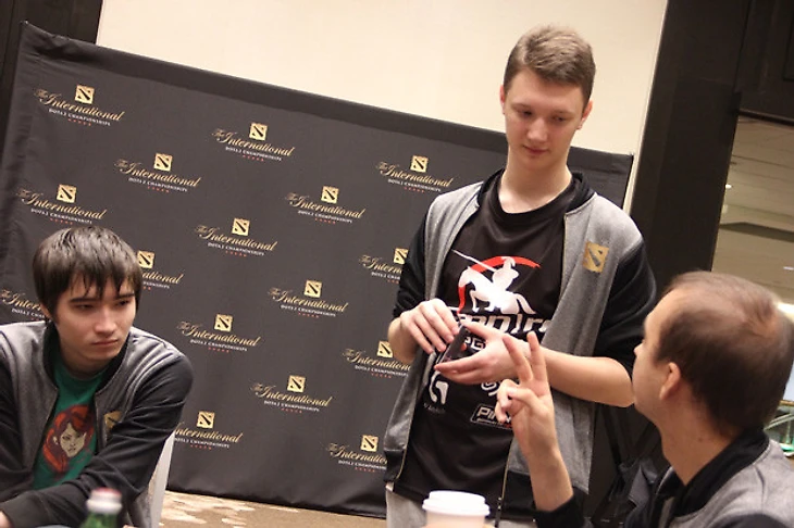 Team Empire came out the victors of a crucial tie-breaker in group A on Thursday, defeating VP to earn their spot in the winner's bracket. During press day the team was in high spirits, unable to contain their delight at their performance the day before. We spoke to Empire's team captain ua Roman 'Resolut1on' Fominok about the groupstage, Techies, the TI meta and his own meme.