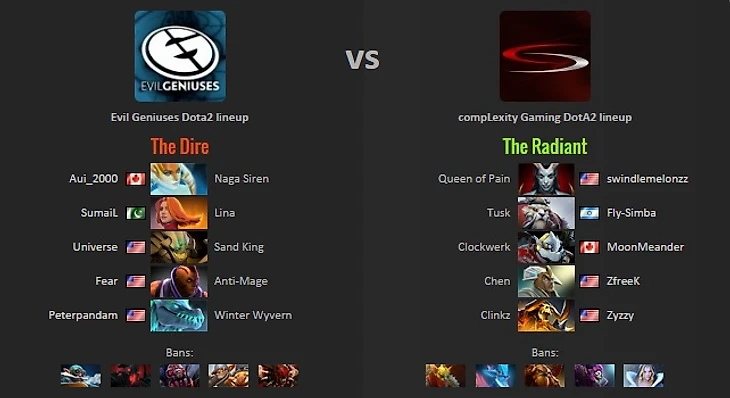 The second day of the main event was plagued by delays, ReDeYe said that they were getting DDOSed. The first match is finally over with Evil Genuises beating Complexity 2-0. In the next round, EG will face the winner of EHOME/Secret while Complexity will be taking on Virtus.Pro in the lower bracket.