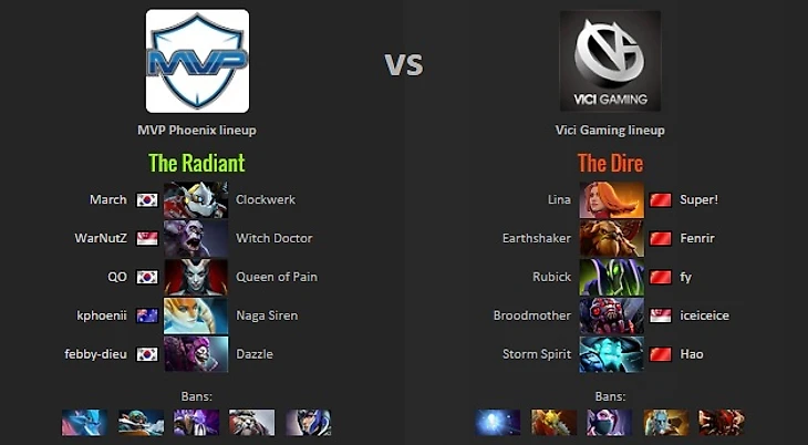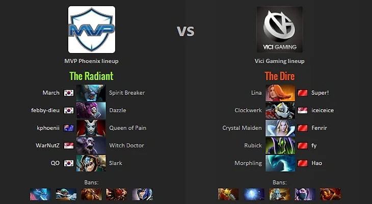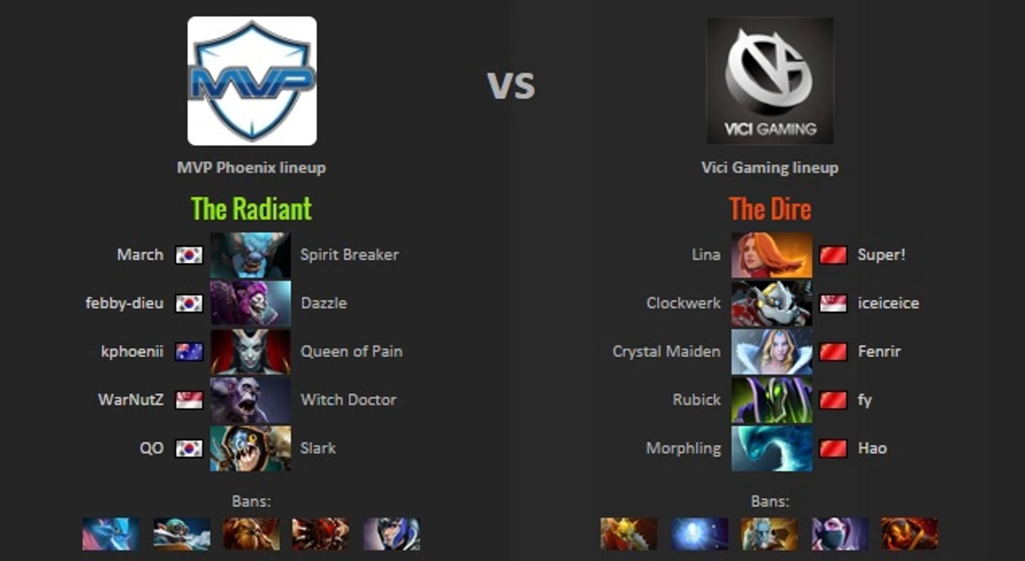 started fairly good for MvP.Phoenix who had a really strong ganking oriented draft with good counters to Fy’s Rubik and a QO Slark to face Super’s Lina in mid lane but Vici Gaming’s last pick made the difference, Hao bringing the first Morphinlg on the big stage of TI5.