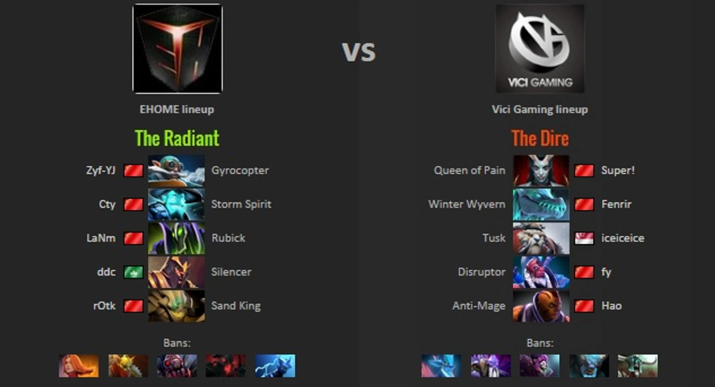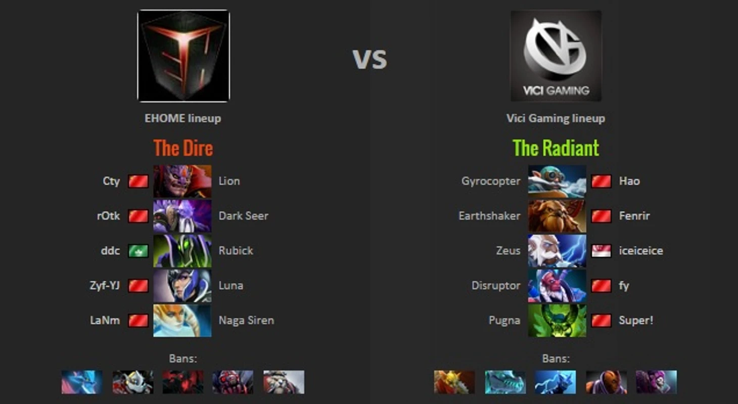 The All-chinese affair started with a reborn deathball style featured by Vici Gaming against a massive teamfight-orientated EHOME draft. The first game feautred trademark heroes such as IceIceIce's Zeus, Super's Pugna, rOtk's DS and Cty's Lina.