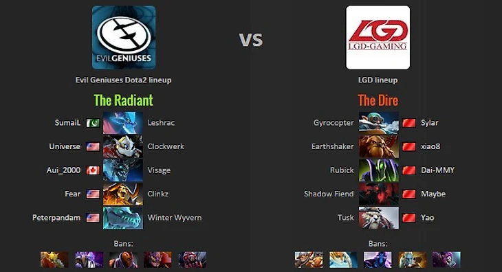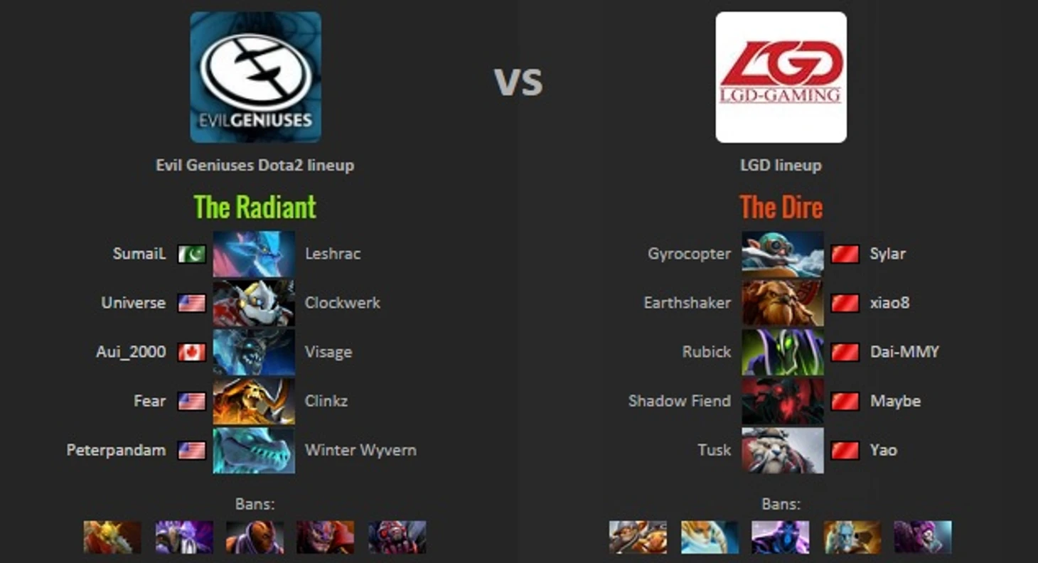 The draft opened with a Techies ban from LGD but ppd had prepared an Enigma (Aui_2000) - Phantom Lancer for the first game of the series which forced xiao8 to react with an Earthshaker and a Silencer last pick.