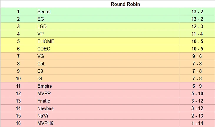 Я представил себе ситуацию, если бы на TI5 использовали формат TI4. На TI4 было сыграно 15 bo1 в групповой стадии, где каждый играл с каждым. Примерно вот это нас ждало было после группового этапа.