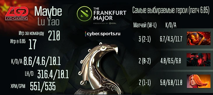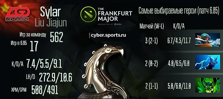 С тем, что у LGD есть сейчас, успехов на Major они добиться не смогут. Команда словно сама не понимает, что хочет  сделать, запутываясь в собственных пиках. При этом, играя на сложной линии, rOtK часто упускает их виду игру своих саппортов, которые стали ошибаться в не самых сложных ситуациях. Однако мы уже не раз видели, как китайские коллективы под руководством опытных капитанов просто на глазах возрождались из пепла буквально в течение одного турнира. Если LGD смогут выстроить игру вокруг своего талантливого молодого мидлейнера, то вполне смогут побороться за 4-5 место, ведь список имен и личный скилл позволяет. Но выше этого команда вряд ли сможет прыгнуть. Будем верить, что rOtK все также непредсказуем, и 2 недели мы снова увидим LGD как сильнуйшую команду Китая.