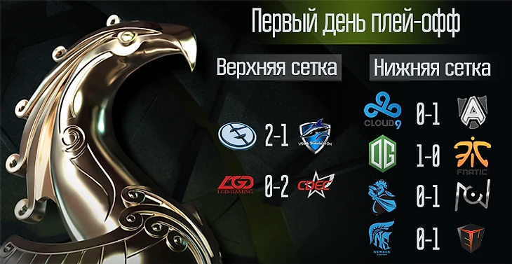 Матч дня нам захотелось выбрать не по его сенсационности (тут всех легко обошли бы перуанцы), а по напряженности и интересу. Три невероятные карты от Vega и EG открывали этот день и стали его настоящим украшением. Да, команды ошибались и в игре, и в драфте, но ведь воспользоваться оплошностями соперника – это тоже особое искусство. СНГ-коллективу не хватило немного, чтобы выбить чемпионов мира в нижнюю сетку, но, видимо, нужно еще немного опыта для борьбы с ними. А EG снова показали, что привыкли выигрывать на стадии пика.