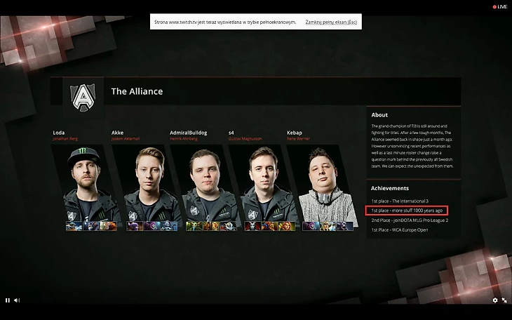 Представление Alliance от JoinDota : «1 место – на многих турнирах, 1000 лет назад»