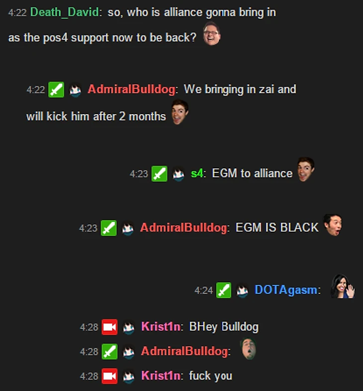 Alliance обсуждают нового тиммейта. А EGM черный.