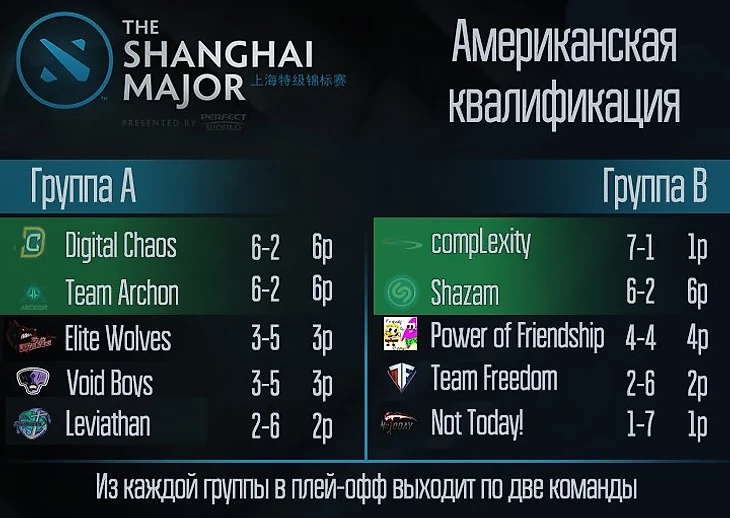 Борьба в Северной Америке развернется нешуточная. На путевку в Шанхай претендуют несколько коллективов, схожих по уровню. В группе А за выход дальше поборются Archon, DC и Leviathan. Команда Aui_2000 – главный фаворит не только в группе, но и во всей квалификации. Но все мы помним, как они неожиданно уступили Team Unknown в квалификациях к осеннему Major.