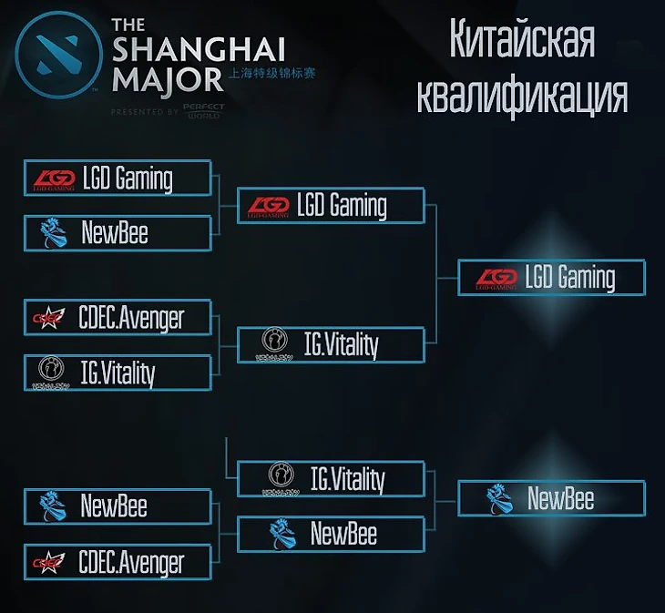 Первое место в группе, А заняли LGD, что было ожидаемо: команда понемногу выходит на свой уровень, а по именам выглядит сильнейшей в квалификации. А в соперники им достались проблемные NewBee, попавшие в плей-оффлишь через переигровки. Бывшие чемпионы мира до сих пор не могут нащупать свою игру, и матч с LGD будет для них крайне сложным.
