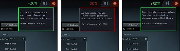 Неплохая идея о том, как поощрять игроков за хорошую игру. Комменд – +20% к шансу дропа шмоточки. Репорт – -20%. Мы же знаем, что вы играете только ради шмоточек.