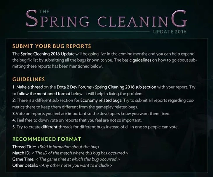 Из большой ветки о багах в Dota выросла целая акция от Valve. Они намерены заняться чисткой мелких и крупных ошибок и просят пользователей рассказать обо всем, что им мешает наслаждаться игрой. Маленькая победа большого форума. Заявки на исправление присылать сюда