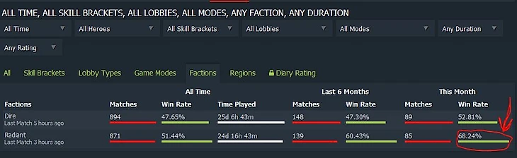 В Dota все сбалансировано. Вот вам балансный винрейт сторон
