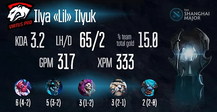 Lil с каждым турниром все ближе подбирается к званию лучшего саппорта-четверки мира. Его действиями восхищаются, а интересные подходы все чаще попадают в копилку других профессиональных игроков. Вряд ли хоть одна команда отдаст ему SB или Visage, не будучи уверенными, что смогут с этим бороться. И новый патч Илья должен принять добротно. Он долгое время оттачивал мастерство на Earth Spirit и Oracle, но пока не успел его в полной мере продемонстрировать в официальных играх. Главная проблема Lil – жадность. Он готов пойти практически на все ради лишнего килла или сотни золота в чужом лесу, что вполне может стоить ему жизни.