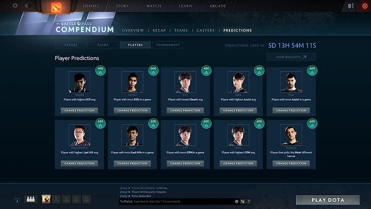 Предикты в компендиуме от PPD (он уже поменял пару игроков)