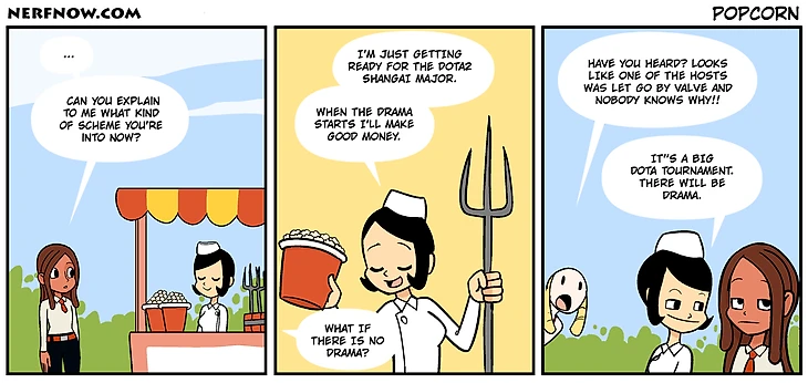 Все это как-то нереально. Турнира на 3 миллиона долларов идет как в каменном веке, популярный ведущий вернулся, чтобы его уволили посреди турнира. Директор Valve называет людей задницами на Reddit. Что происходит, ребята? Я просто хочу посмотреть доту