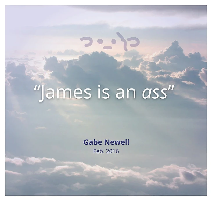 Это непостижимо. Valve наняли Джеймса, потому что он задница. Потому что эта задница привлекает невероятное количество публики и его стиль как раз заключается в том, что он задница. И вы не позволяете ему пару колких высказываний?