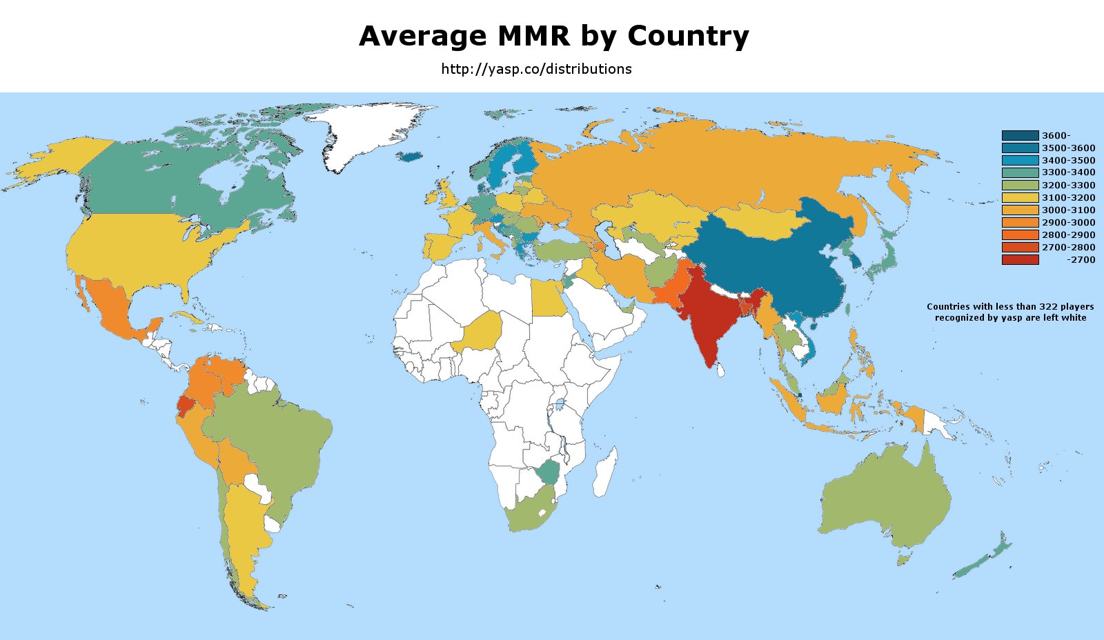 Средний MMR игроков по странам (по данным YASP).