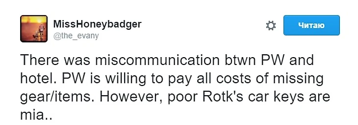 По словам менеджера OG, между Perfect World и отелем возникло недопонимание. Perfect World готовы оплатить потерянные девайсы. Однако, кто объяснит rOtk, куда делись его ключи от Мазерати? Пока что они просто исчезли.