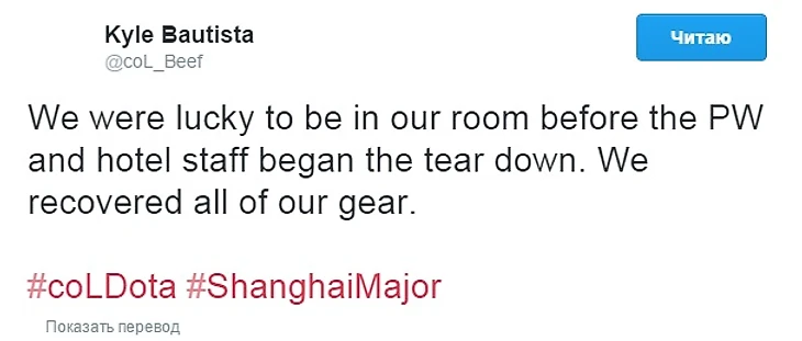 Когда казалось, что The Shanghai Major закончился без сюрпризов, персонал отеля, в котором проживали команды и находились тренировочные комнаты, решил без предупреждений с утра освободить помещение и упаковать оборудование. В результате девайсы большинства игроков либо уложили в коробки, либо потеряли, либо растащили.