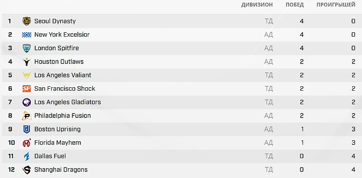 3:00 San Francisco Shock 1:2 Philadelphia Fusion5:00 Florida Mayhem 0:4 Seoul Dynasty7:00 Houston Outlaws 4:0 Shanghai Dragons