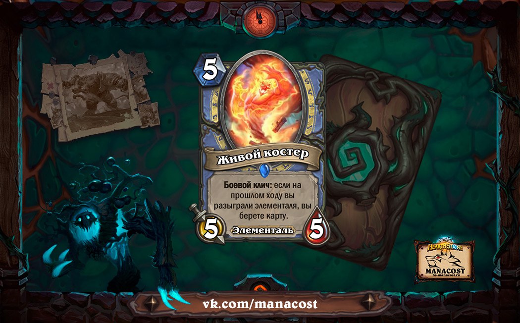 «Живой костер». Боевой клич: если на прошлом ходу вы разыграли элементаля, вы берете карту.