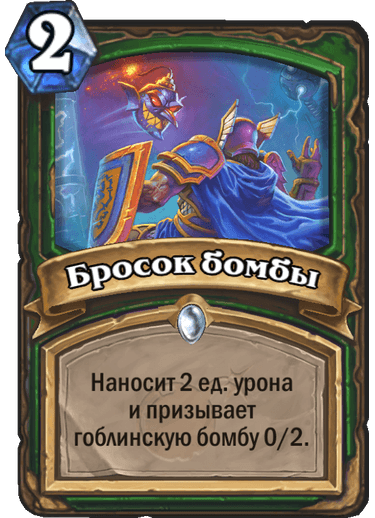 «Бросок бомбы». Наносит 2 ед. урона и призывает гоблинскую бомбу 0/2.