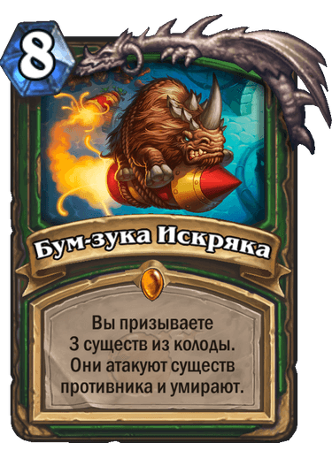 «Бум-зука Искряка». Вы призываете 3 существ из колоды. Они атакуют существ противника и умирают.