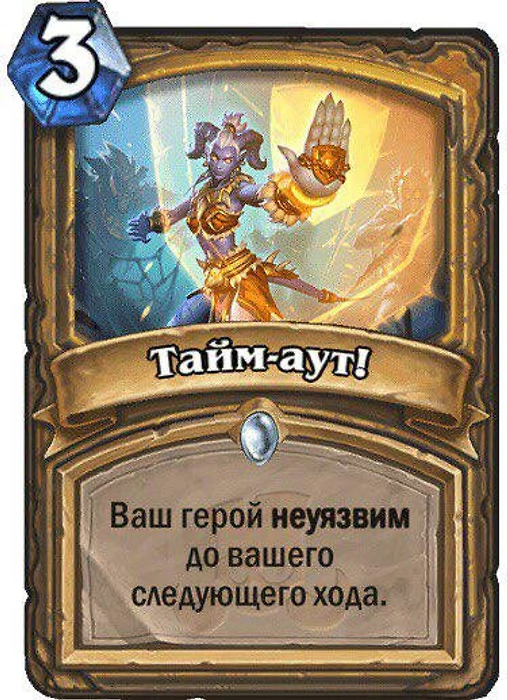 «Тайм-аут!»: ваш герой неуязвим до вашего следующего хода. Карта стоит 3 кристалла маны.
