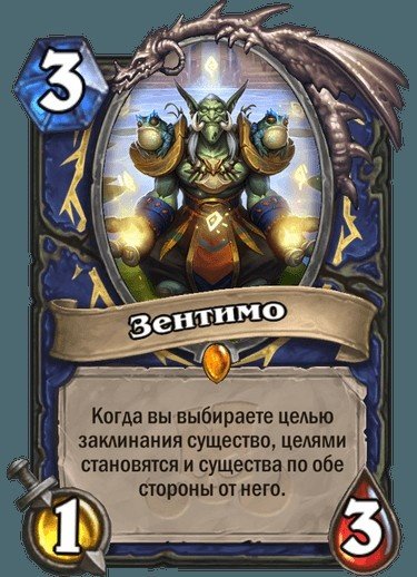 Легендарное существо Шамана Зентимо: Когда вы выбираете целью заклинания существо, целями становятся и существа по обе стороны от него.