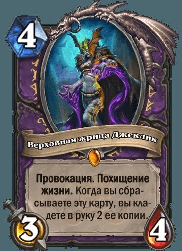 Легендарное существо Чернокнижника Верховная жрица Джеклик: Провокация. Похищение жизни. Когда вы сбрасываете эту карту, кладете в руку 2 ее копии.
