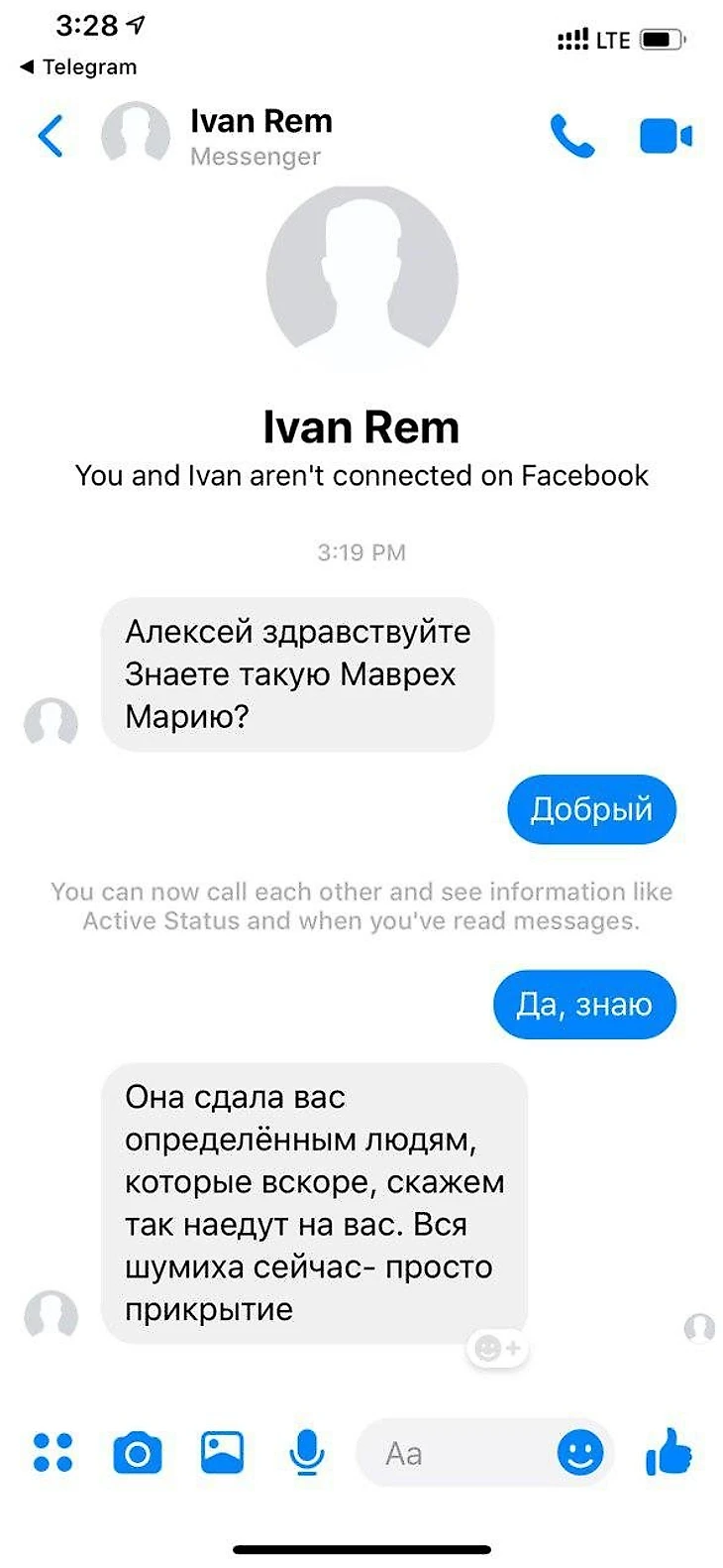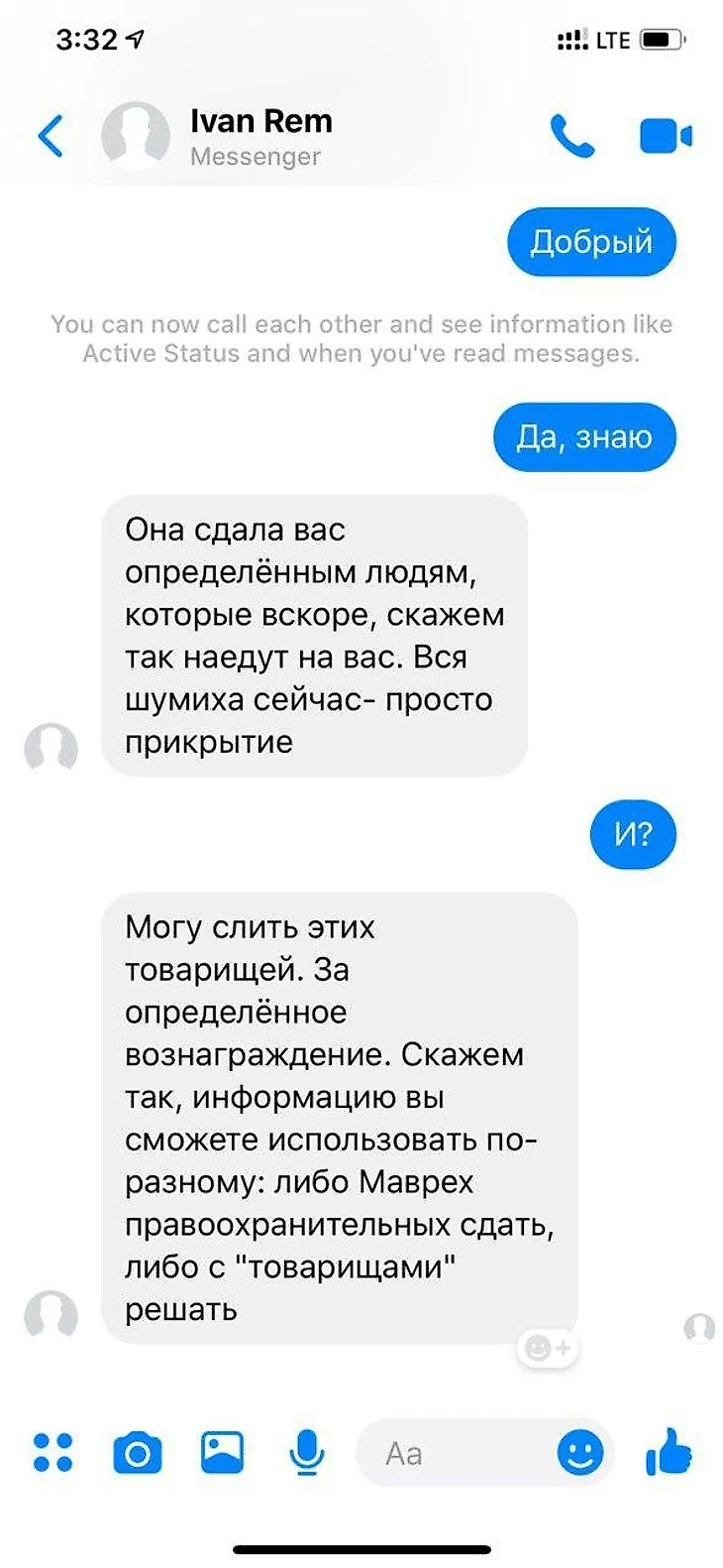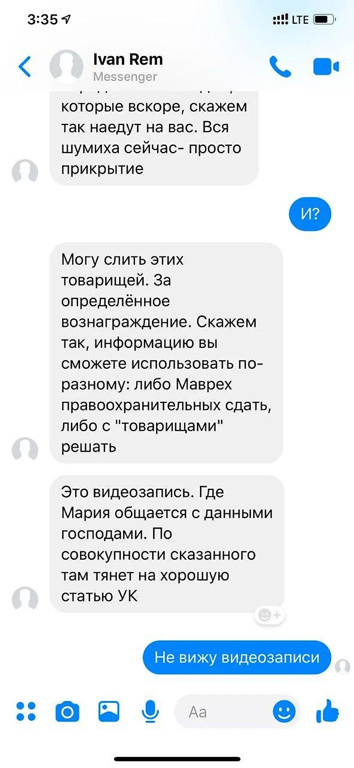 «Буквально несколько минут назад ко мне в фейсбук постучался неизвестный с подобным «предложением». Кажется что после таких сообщений, все еще больше становится понятно. Как и то, что данной ситуацией необходимо будет заниматься правоохранительным органам и беседовать с Марией», – рассказал Бурдыко.