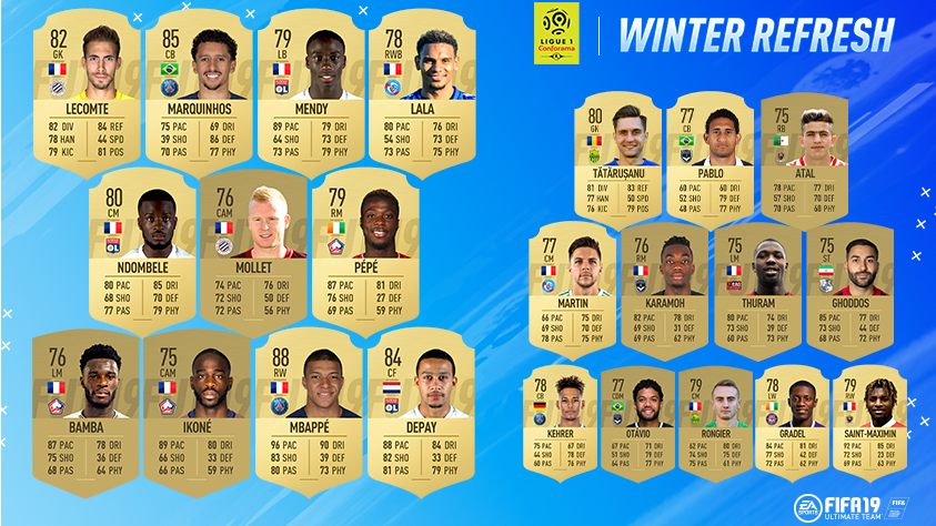 В зимнем обновлении FIFA 19 EA Sports подняла рейтинг 23 футболистам Лиги 1.