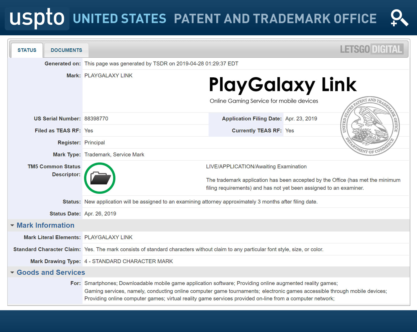 Samsung зарегистрировала торговый знак PlayGalaxy Link.