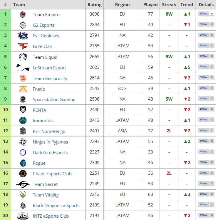 Состав Team Empire по Rainbow Six Siege занял первое место в рейтинге Liquipedia.