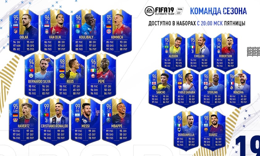 EA Sports представила состав лучших игроков сезона в FIFA 19.