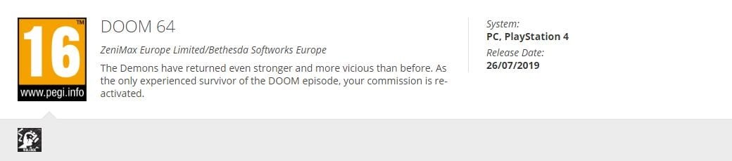 Информация о возможном порте появилась после того, как рейтинговое агентство Pegi выставило рейтинг Doom 64 для ПК и Playstation 4. Игра также может выйти на Nintendo Switch и Xbox One: в рейтингах Doom и Doom 2 также не указаны эти платформы.