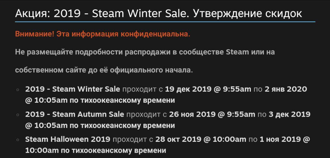 Valve прислала документ с датами распродаж разработчикам и издателям, попросив их не распространять его раньше времени. Документ оказался в сети.