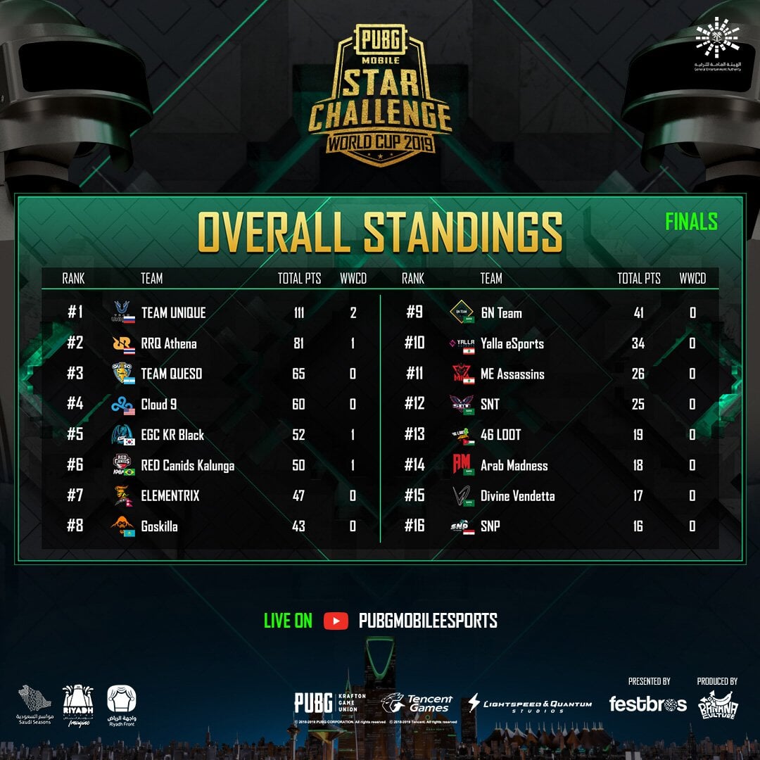 Team Unique выиграла ЧМ по PUBG Mobile и заработала 100 тысяч долларов