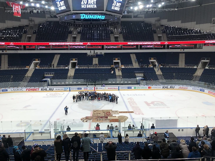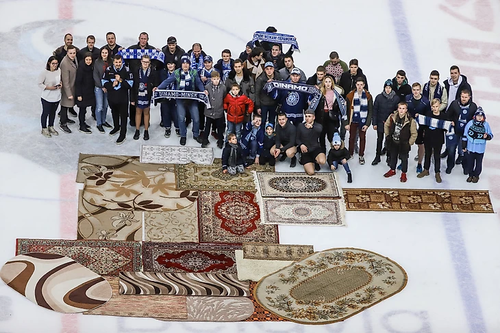 Более 30 человек пришли на матч с коврами. После игры они собрали на льду «ковротанк» размером 10 на 7 метров, а также приняли участие в фотосессии с игроками «Динамо».