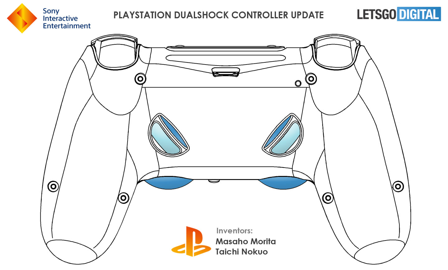 На новом устройстве нет кнопки PlayStation на лицевой стороне, но присутствуют четыре кнопки на задней стороне. Большие кнопки, согласно патенту, реагируют и на полное, и на частичное нажатие.