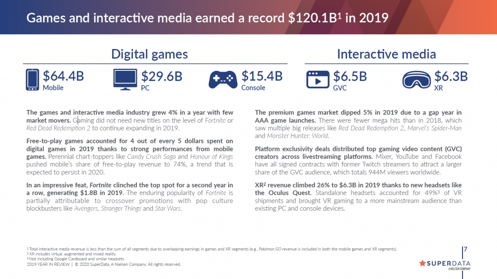 Аналитическая компания SuperData Research опубликовала статистический отчет индустрии видеоигр за 2019 год.